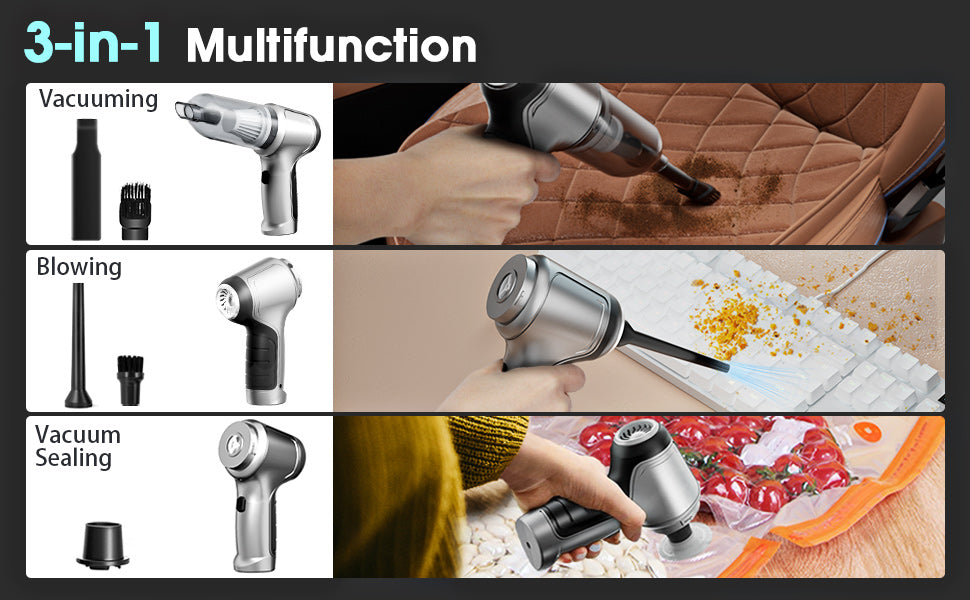 3-in-1 Portable Vacuum Cleaner | Strong Suction | Blower + Air Pump | Wireless & Rechargeable